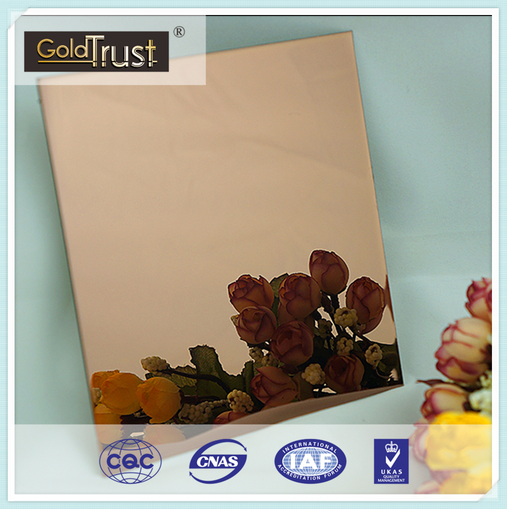 不銹鋼鏡面板是本色的,而玫瑰金鏡面板就是在不銹鋼鏡面板基本上鍍上一層膜,表面耐腐蝕性、耐磨性比普通不銹鋼強。顯而易見肯定是玫瑰金鏡面的好了。至于防潮效果,那就得看材質了,如果是沿海地區就要用304,其他地區201就可以了。鈦金不銹鋼表面呈金黃色,玫瑰金不銹鋼顏色有點兒土紅色,玫瑰金不銹鋼板是一種新型材料。玫瑰金不銹鋼板獨特的色彩不僅高貴典雅,還有份神秘的驚艷之感。