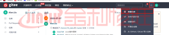 在碼云上創建一個項目倉庫