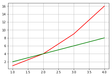 這里,行[1]分別對應于X2和Y2。我們還有兩對參數'color'、'g'和'linewidth'、'2.0'。