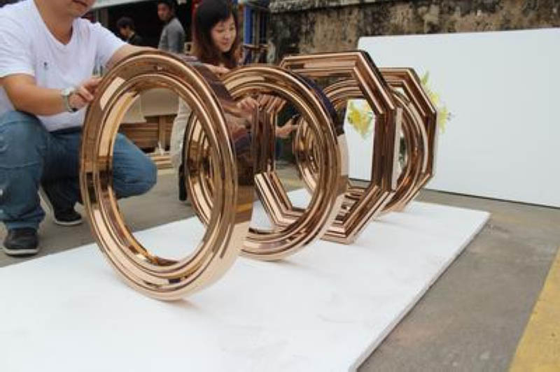 高檔的酒店現(xiàn)在都流行用不銹鋼的產(chǎn)品進(jìn)行點(diǎn)綴和裝飾,比如說(shuō)不銹鋼屏風(fēng),不銹鋼畫(huà)框等等。這些產(chǎn)品更難體現(xiàn)奢華的現(xiàn)代和歐式裝飾風(fēng)格。KTV或者星級(jí)酒店里面使用的不銹鋼產(chǎn)品就更多了。比如不銹鋼茶幾,不銹鋼包邊等等。不銹鋼經(jīng)過(guò)鍍鈦之后它的表面可以呈現(xiàn)鈦金,玫瑰金,黑色等顏色,色彩光耀奪目,煞是好看。它的制作流程一般是: