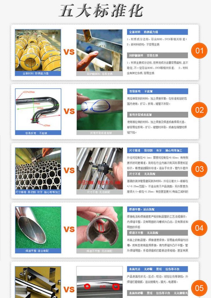 可以用來做不銹鋼防盜窗,不銹鋼防護欄,不銹鋼圍欄,不銹鋼樓梯扶手等,結實耐用,幾十年都不生銹,保障財產安全。圍欄不銹鋼裝飾管是用鋼帶經過機組和模具卷曲成型后焊接制成的鋼管。