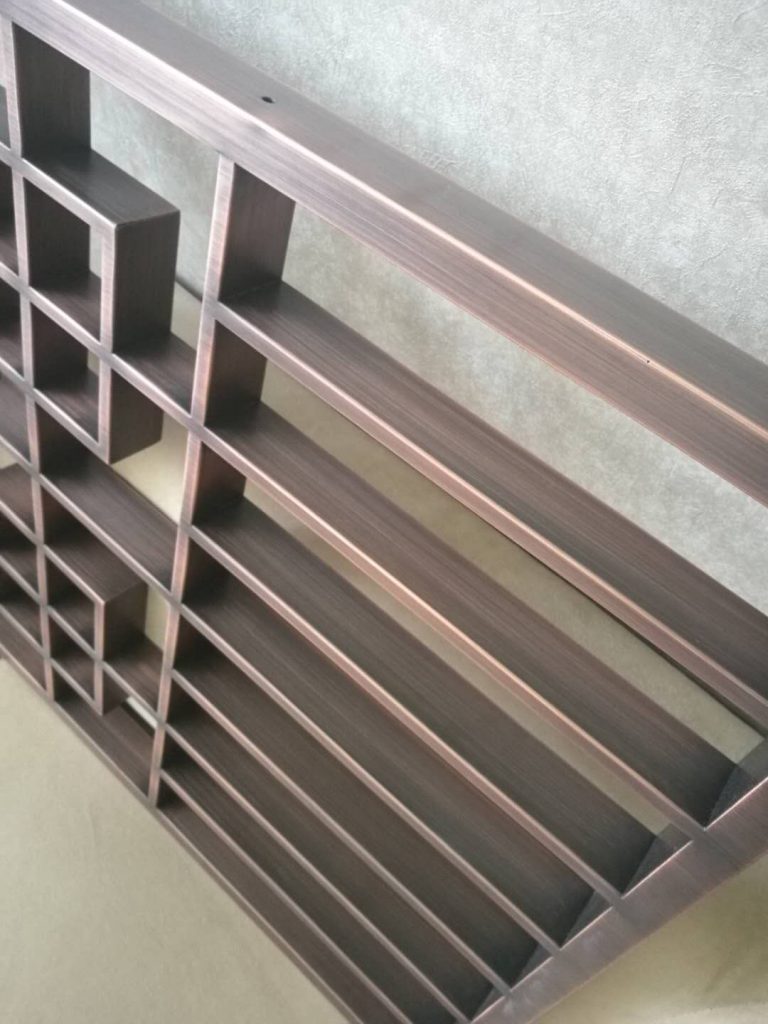 1、電鍍青古銅工藝。該工藝采用真空電鍍爐,在高溫下通過離子打標,在不銹鋼屏風的表面覆蓋一層鈦鎂離子層膜,這種膜通過光的干涉作用下,可以形成古銅的顏色。其優(yōu)勢在于:表面增加一層膜,因此也增強了不銹鋼的抗腐蝕能力,同時表面的膜是離子之間的微作用力,粘附性很強,不容易掉色、褪色。
