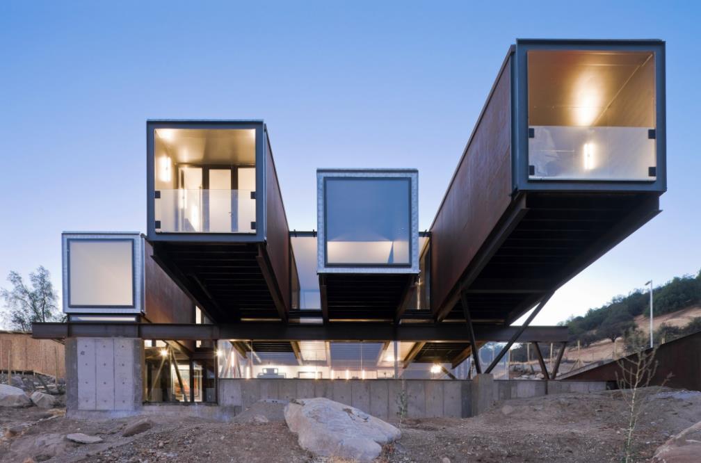 這種美景坐落在智利的巖石山坡上,就在圣地亞哥城外。雖然是用 1 2個(gè)海運(yùn)集裝箱制造的,但很容易被誤認(rèn)為是價(jià)值數(shù)百萬(wàn)美元的豪宅。它的特點(diǎn)是一個(gè)被動(dòng)通風(fēng)系統(tǒng),利用從下面的溝渠的自然氣流冷卻房屋,使電子空調(diào)沒(méi)有必要。內(nèi)飾和橋接部件非常重鋼,內(nèi)部有一種時(shí)尚的現(xiàn)代感覺(jué)。