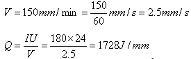電流180A,電弧電壓24V,焊接速度150mm/min。試計(jì)算其線能