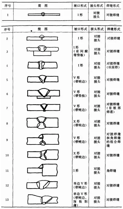 根據(jù)坡口的形狀,坡口分成I形(不開(kāi)坡口)、V形、Y形、雙Y形、U形、雙U形、單邊V形、雙單邊Y形、J形等各種坡口形式。