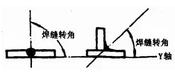 焊縫轉(zhuǎn)角,即焊縫中心線(焊根和蓋面層中心連線)和水平參照面Y軸的夾角,見(jiàn)圖1—14。