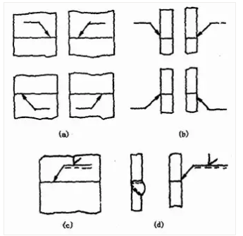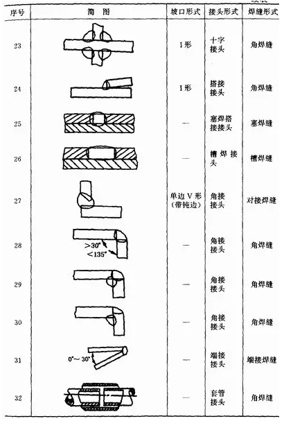 焊接中,由于焊件的厚度、結(jié)構(gòu)及使用條件的不同,其接頭型式及坡口形式也不同。焊接接頭型式有:對(duì)接接頭、T形接頭、角接接頭及搭接接頭等。