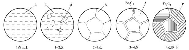 圖1.3.7 過共析鋼組織轉變過程示意圖