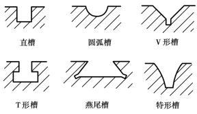 此外,根據(jù)使用或制造的要求,零件上還常有各種溝槽。溝槽實際上是由平面或曲面所組成的,常用溝槽的斷面形狀如圖5.1. 3所示。